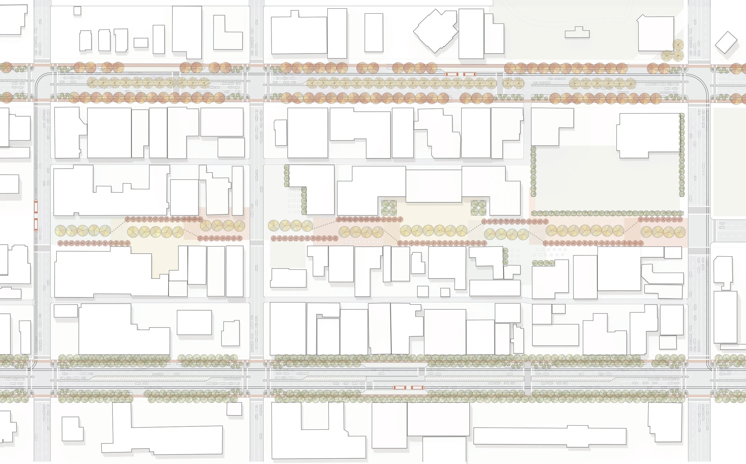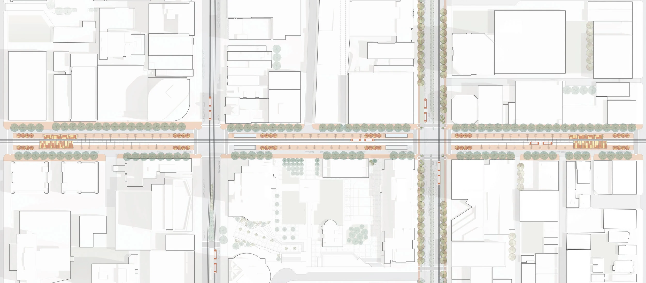 These sections explore the restorative and transformative power of an expanded streetcar system in Salt Lake City. Focused on two nodes in the proposed network, they highlight potential strategies for traffic calming, integrating cyclists and enlivening pedestrian experience.